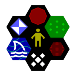 various tiles center - player character, above the player - rock, north-west - the jewel, south-west - a shark, north-east - grass, south-east - young amoeba, below the player - the explosion.